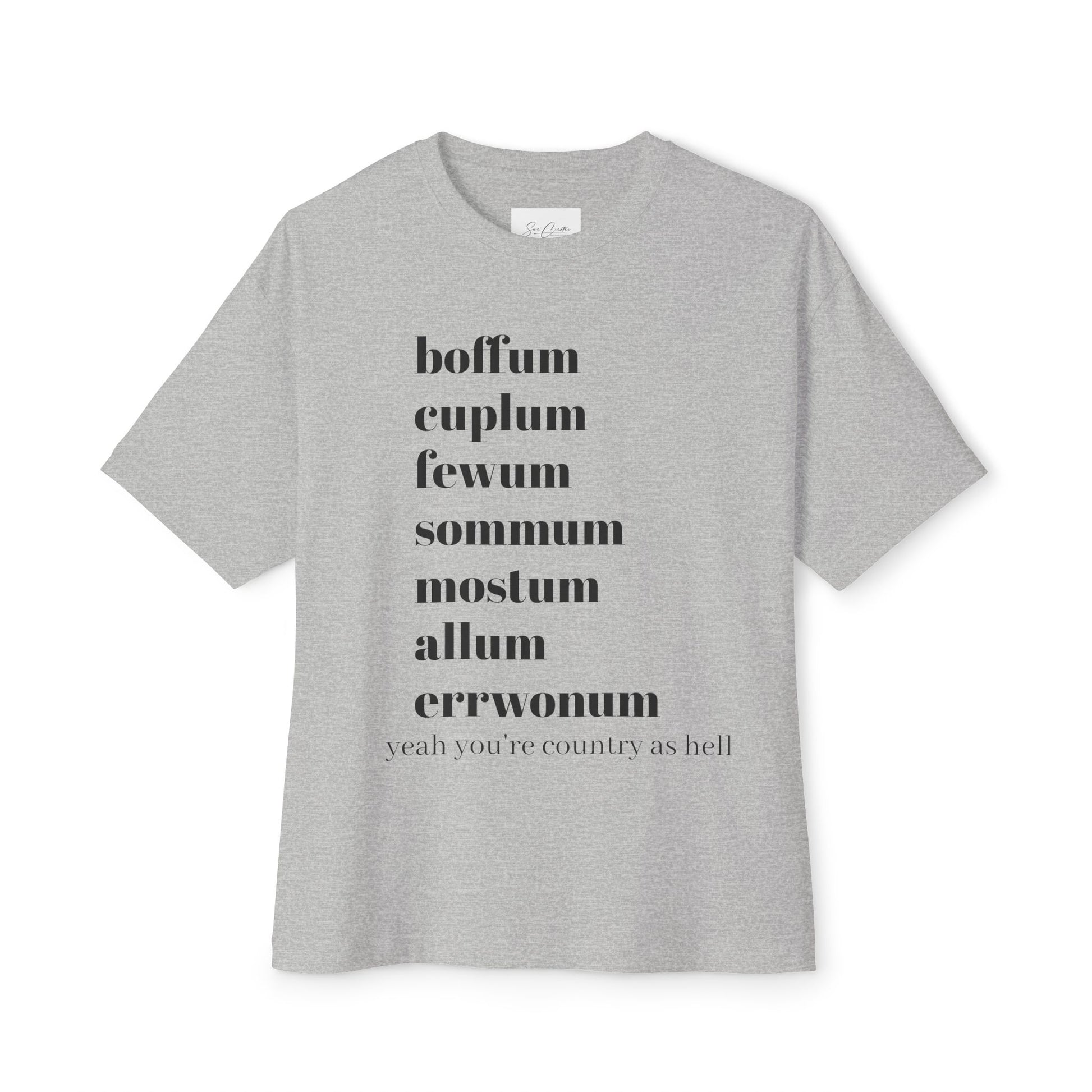 This hilarious T-Shirt features country slang that will bring a smile to anyone's face. The oversized and boxy fit provides a relaxed and comfortable feel, perfect for lounging or running errands. A great addition to any casual wardrobe, this T-Shirt is ideal for those who appreciate a touch of humor in their everyday outfits. Perfect for gifting on birthdays, holidays, or just because.